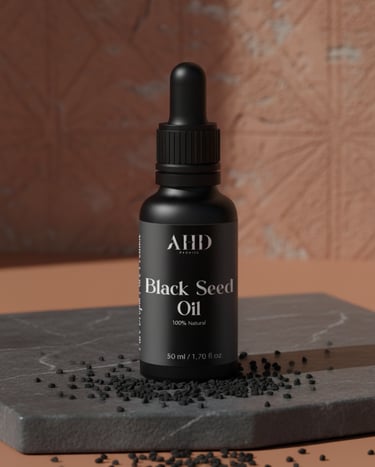 Versatile and 100% natural, AHD Promise Black Seed Oil can be used for facial care, body massage, or hair treatments.