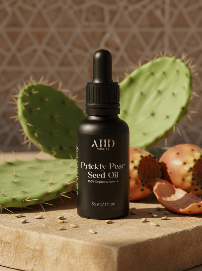 Véritable élixir de jeunesse, l’huile de figue de barbarie AHD Promise est extraite à froid des graines du cactus de figue de barbarie, un trésor rare du désert marocain.