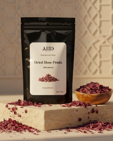 100% naturelles et sans additifs, ces roses séchées incarnent la pureté et la qualité artisanale marocaine.